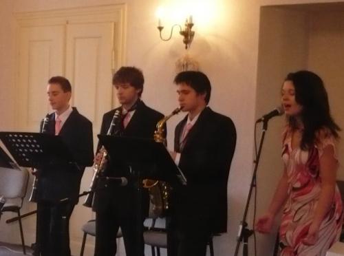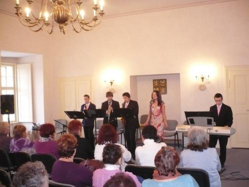 Souznění klarinetu, saxofonů, keyboardu a sytý dívčí hlas zpěvačky Mariky Postlerové, známé melodie i půvabně zazpívaná vánoční píseň nakonec – tím potěšili čtyři mladíci a zpěvačka – skupina Panteři z Chyňavy návštěvníky dalšího z koncertů pořádaných na nižborském zámku, v sobotu 27. listopadu odpoledne.