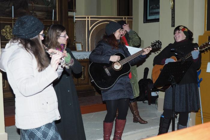 Pondělí 17. prosince, šest hodin večer. Není to úplně ideální čas na koncert, jako je třeba pátek večer či sobota odpoledne. Přesto se kaple sv.Liboria ve Stradonicích zcela naplnila příznivci vánoční hudby a zpěvu. Dokonce přišly celé rodinky i s dětmi. Většinou s malinkými, ale což je chvályhodné, i s několika školačkami. Hudbu a zpěv nabídla ženská hudební skupina LEMAJA a to ne poprvé. Už jsme je zde viděli a slyšeli právě před rokem. Velikou přízeň posluchačů si pohledné a temperamentní zpěvačky získávaly už od začátku jejich vystoupení vtipnými, veselými komentáři a především dokonale zazpívanými trojhlasými písněmi s udivující, zajímavou harmonií. Některé písně zpívaly s vlastním doprovodem na kytaru a bubínky, některé, asi církevní, s latinským textem. Milý byl závěr koncertu, kdy se společně zazpívaly známé české koledy, doprovázené cinkáním a klepáním různými cingrlátky, zapůjčenými do rukou dětí. LEMAJA zasvítila ještě jednou, a to nápadem pozvat do svého programu hosty - skvělé flétnistky souboru jménem FLÉTNOVÝ KVARTET NAPŘÍČ s primaskou Iris Ekrtovou. I ony každého potěšily a obohatily nevšední krásou jejich hudby. Za krásné muzicírování a zpívání všem poděkovala paní starostka a místostarosta obce, a nakonec jsme si spokojeni navzájem popřáli šťastné a veselé Vánoce. Jan Lukeš.
