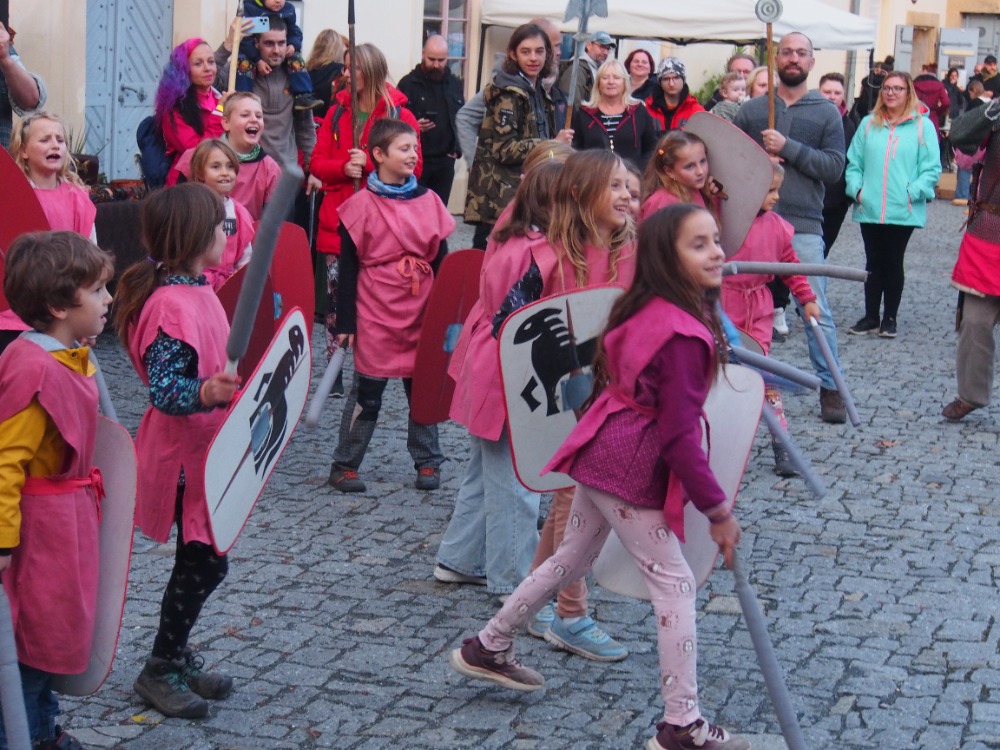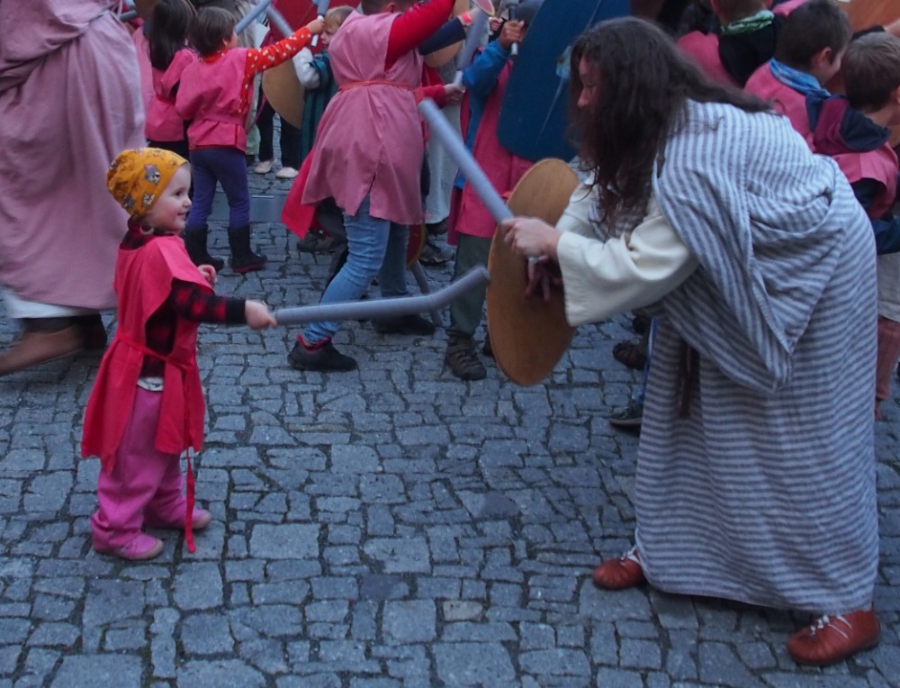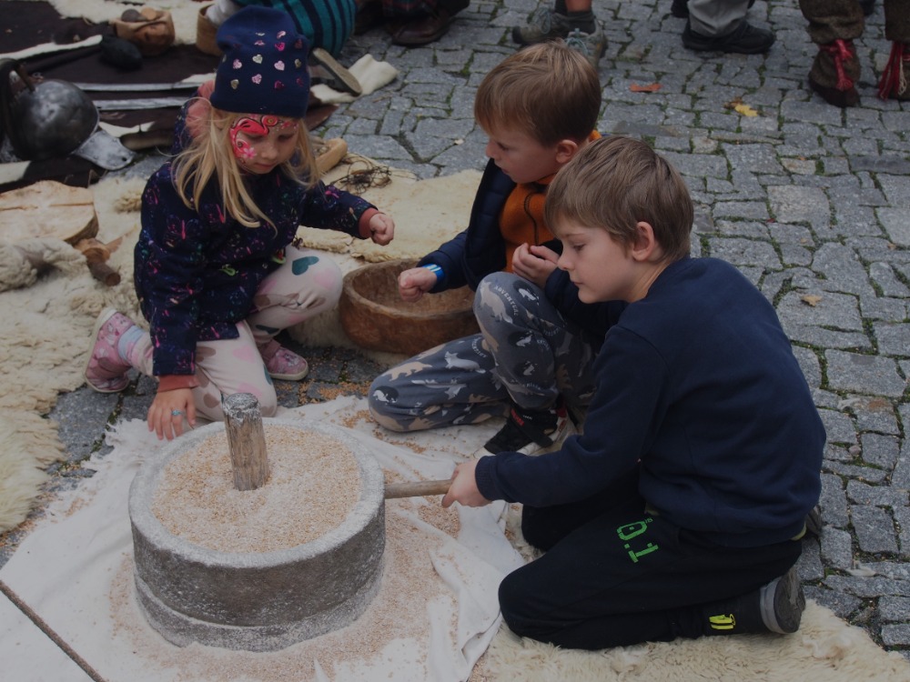 I děti si Samhainu dosyta užily – na blízké loučce sestavovaly z úlomků různé předměty, z jednotlivých kostí se pokoušely složit kostlivce, z desek maxipuzzle složit například oblíbeného Asterixe a motyčkou vyhrábnout z písku zajímavý úlomek čehosi starověkého. To nejzábavnější čekalo na děti i dospělé v závěru keltského svátku – bitka dětské římské legie, vyzbrojené molitanovými meči a lehkými štíty, s hordou divokých Keltů. Trochu paradox, že děti pobily všechny právě oslavované a velebené Kelty, ale těm malým bojovníkům to bylo jedno. Byli v mnohonásobné přesile a tak je to „mečování“ bavilo.