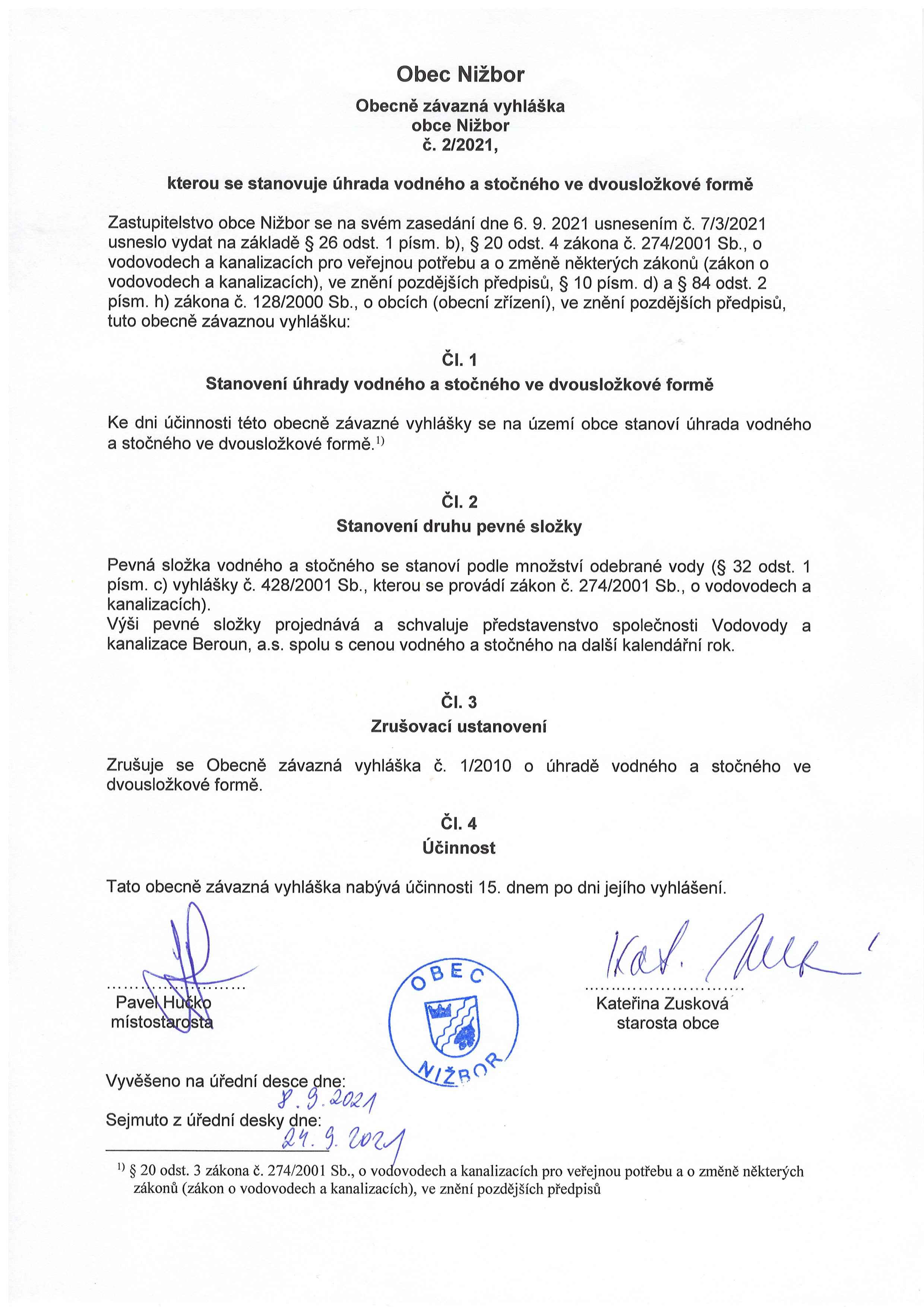Obecně závazná vyhláška Obce Nižbor o místním poplatku za odkládání komunálního odpadu z nemovité věci